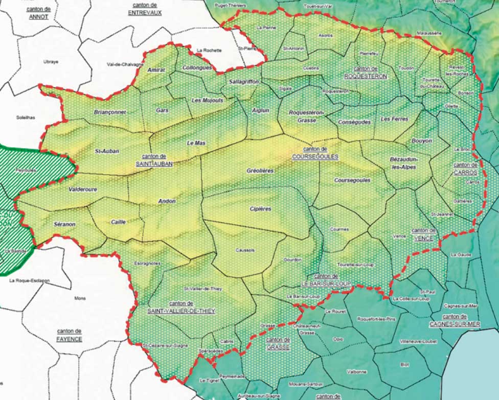 Carte géographique du territoiredu futur Parc Naturel Régional Préalpes d'Azur.