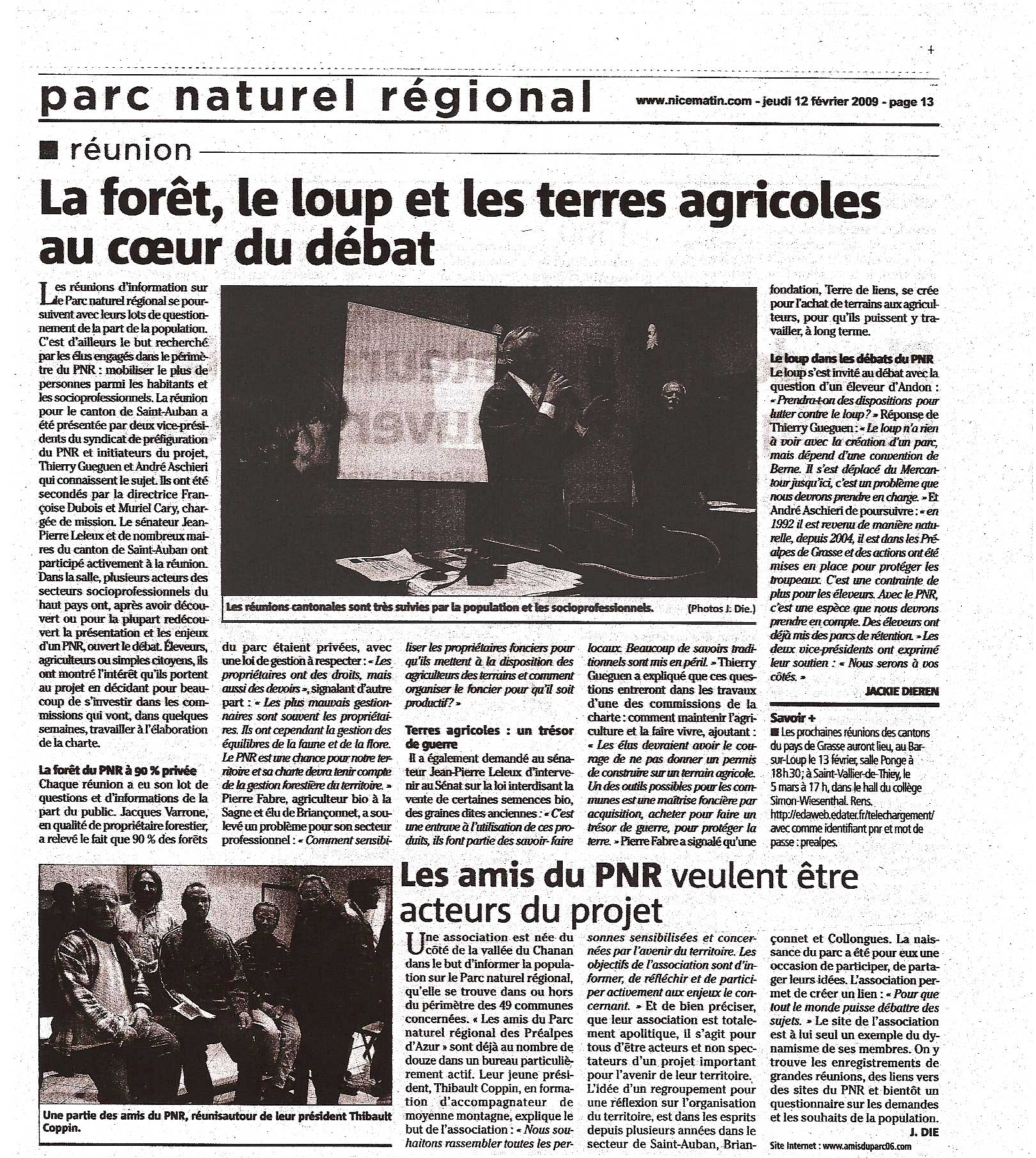 | Archives Parc Naturel Régional Préalpes d'Azur: Août 2004 Etude de préfiguration du Parc Naturel Régional des Préalpes d’Azur par CRP consulting Biotope Août 2004 format Pdf (9Mo) Avril 2006 Fin 2008 janvier, 2009 13/01/09 à St Vallier 31/01/2009 Article de Nice matin sur la 1er réunion cantonale à Gréoliere du Télécharger le document 7/02/09 Réunion cantonale à Andon - Télécharger et Lire Nice-Matin 14/02/09 à st Antonin Réunion cantonale - Enregistre audio: Trame Verte et Bleue "les suites du Grenelle de l'environnement." Lire le document 20/02/09 à Carros Réunion cantonale - Télécharger le compte-rendu 27/02/09 à Vence Réunion cantonal Lire le compte-rendu 5/03/09 St Vallier Réunion cantonal 6/03/09 à Gilette Réunion cantonal 2eme série de commissions thématiques du vendredi 17 avril Commission 4 : Développement économique durable à Carros Commission 2 : Ressources naturelles, risques naturels et énergies